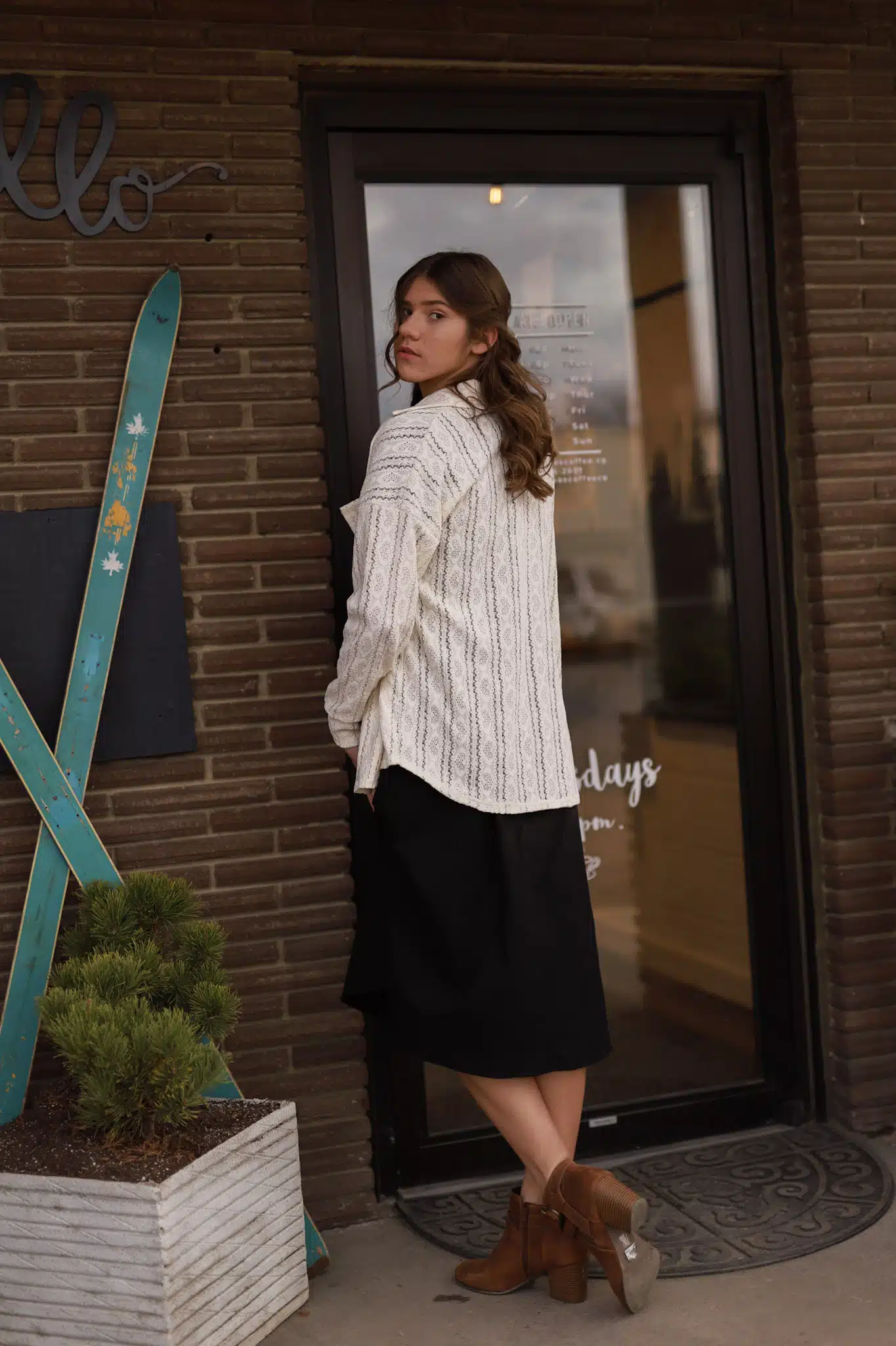 the model is wearing a small and is 5′ 7″
