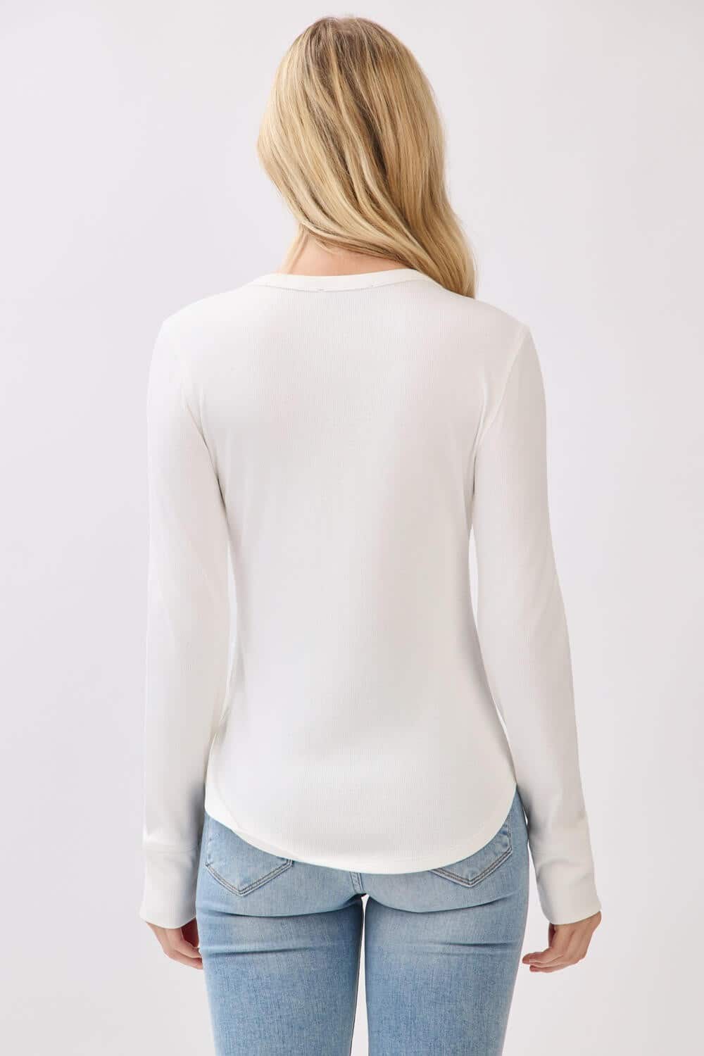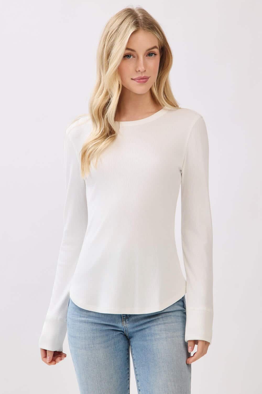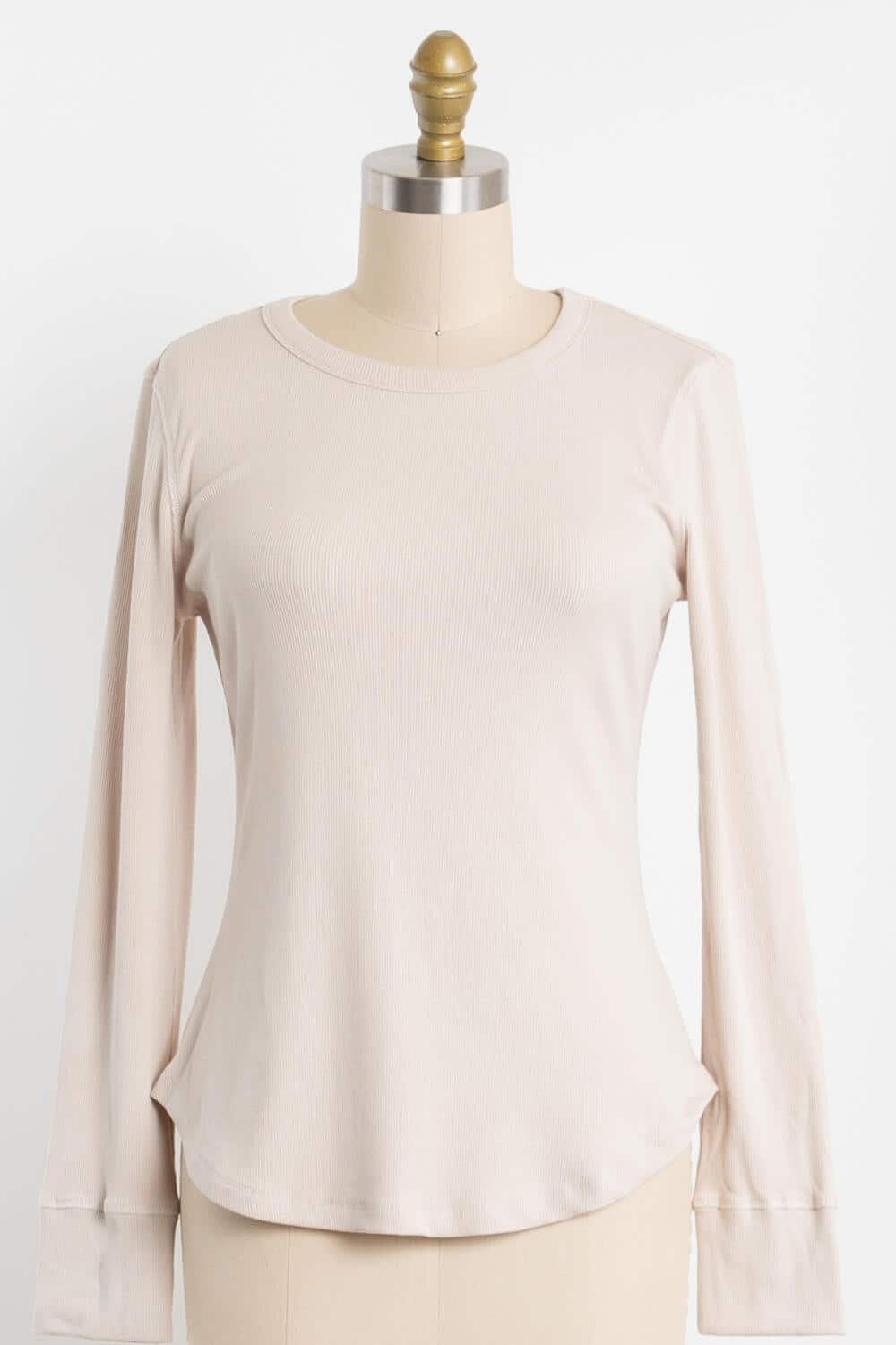Ribbed Crew neck long sleeved tshirt.with rounded hem, beautiful ribbed fabric, Perfect under your new jumper! Available in Fog and Black! picin cream are for refernce Fog is abit more tan coloured!