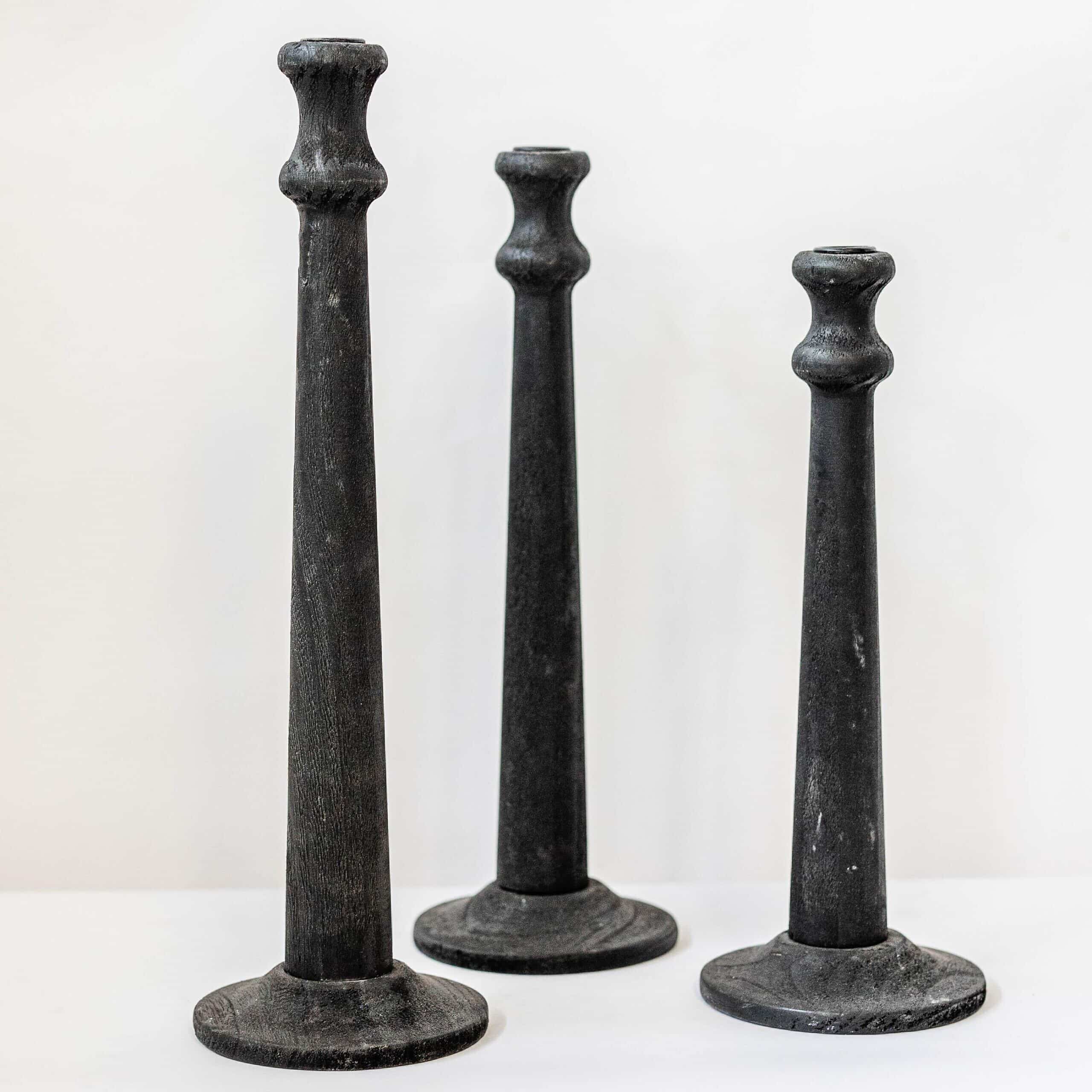 Wooden candle holders made in India Large 18.25″ measures’Medium measures 16.25″ high with about a 5″ base